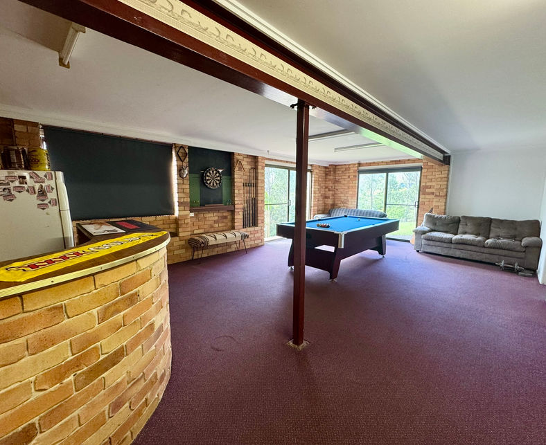 - Large lounge room with built in brick bar